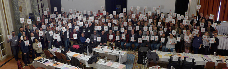 The participants at the Presidents’ Conference show their support for the UTE Bargaining Team