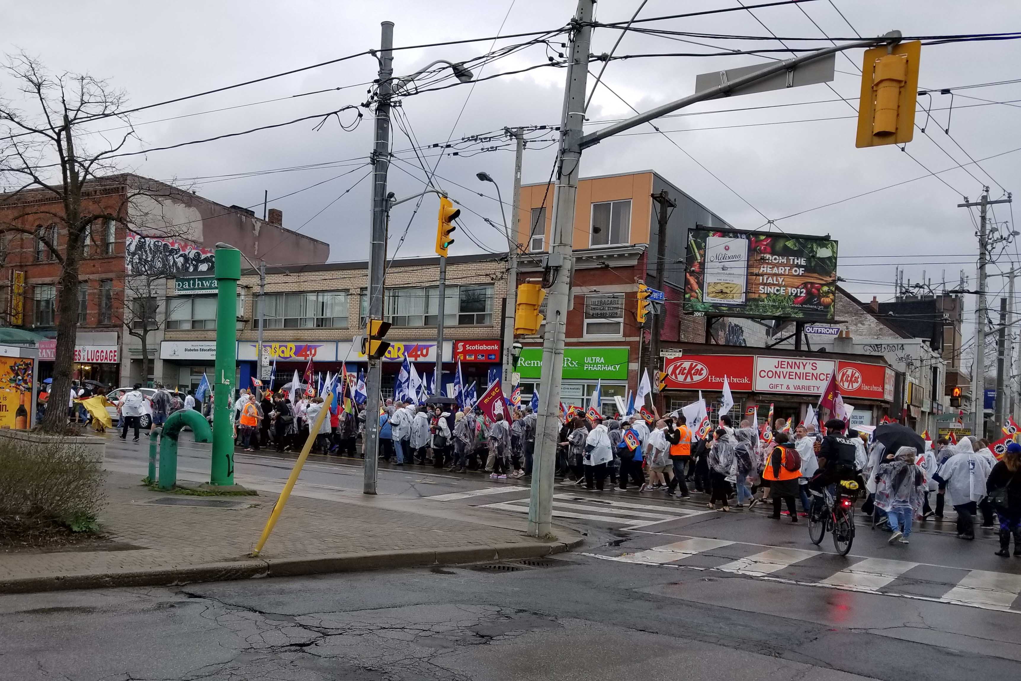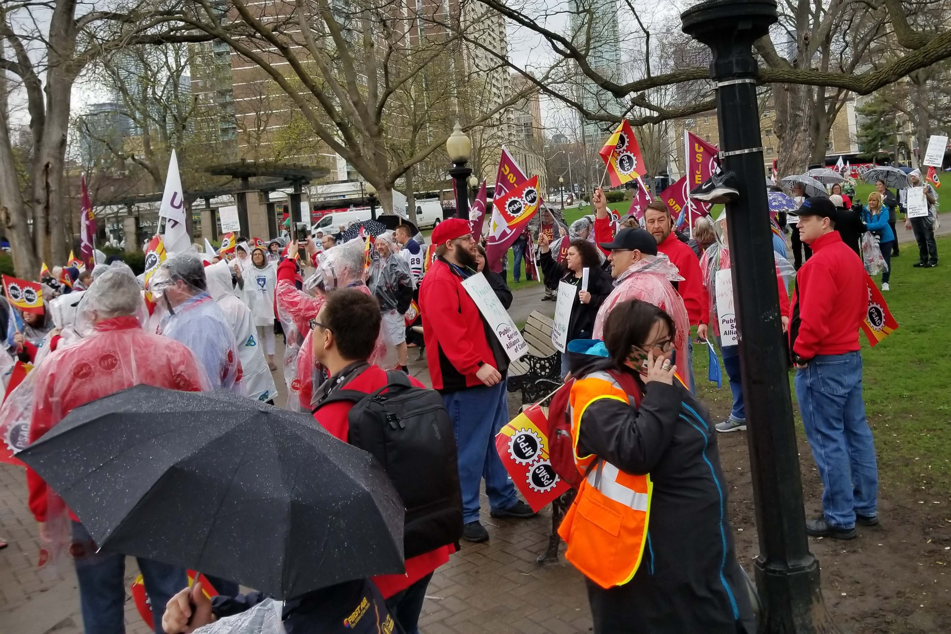 Marching to Bill Morneau's office to demand that the Liberal government take action to pay their employees properly and on time