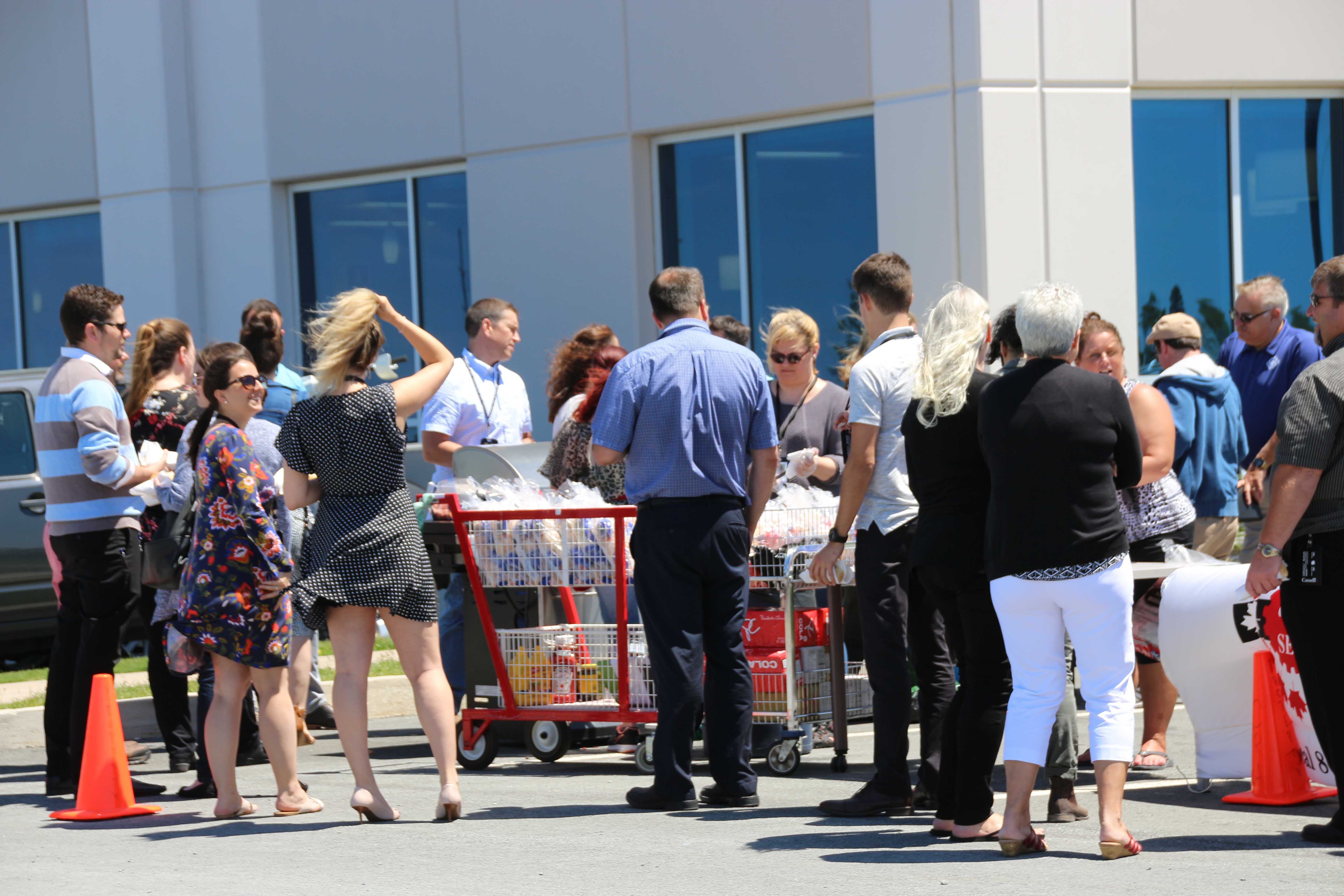 Exec on grills (Darryl Payne, Barb Burns-Bahadur, Cheryl Ballard) with RVP in background on bun duty