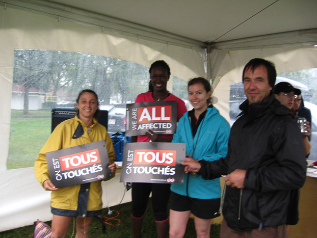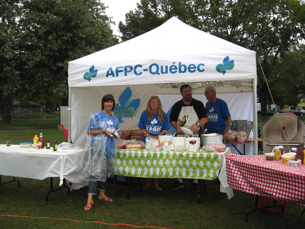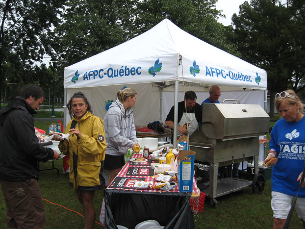 Ils ont donnés plus de 300 hotdogs, ont utilisés les sifflets et donnés de l’informations aux membres du SEI et AFPC. / They handed out more than 300 hotdogs, used the whistles and gave out information to UTE and PSAC members.