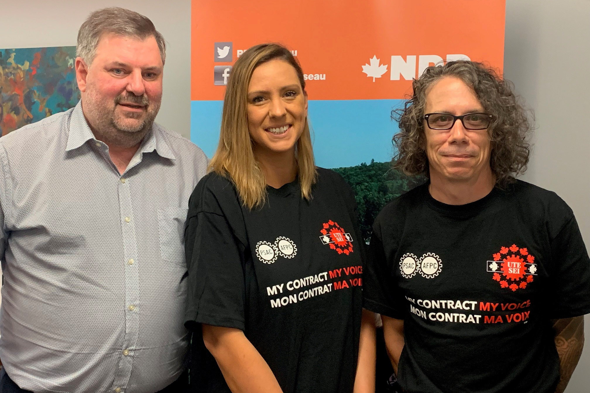 Local president, Patrick Bertrand met with NDP Leader Jagmeet Singh, discussed our issues and presented him with one of our t-shirts.
