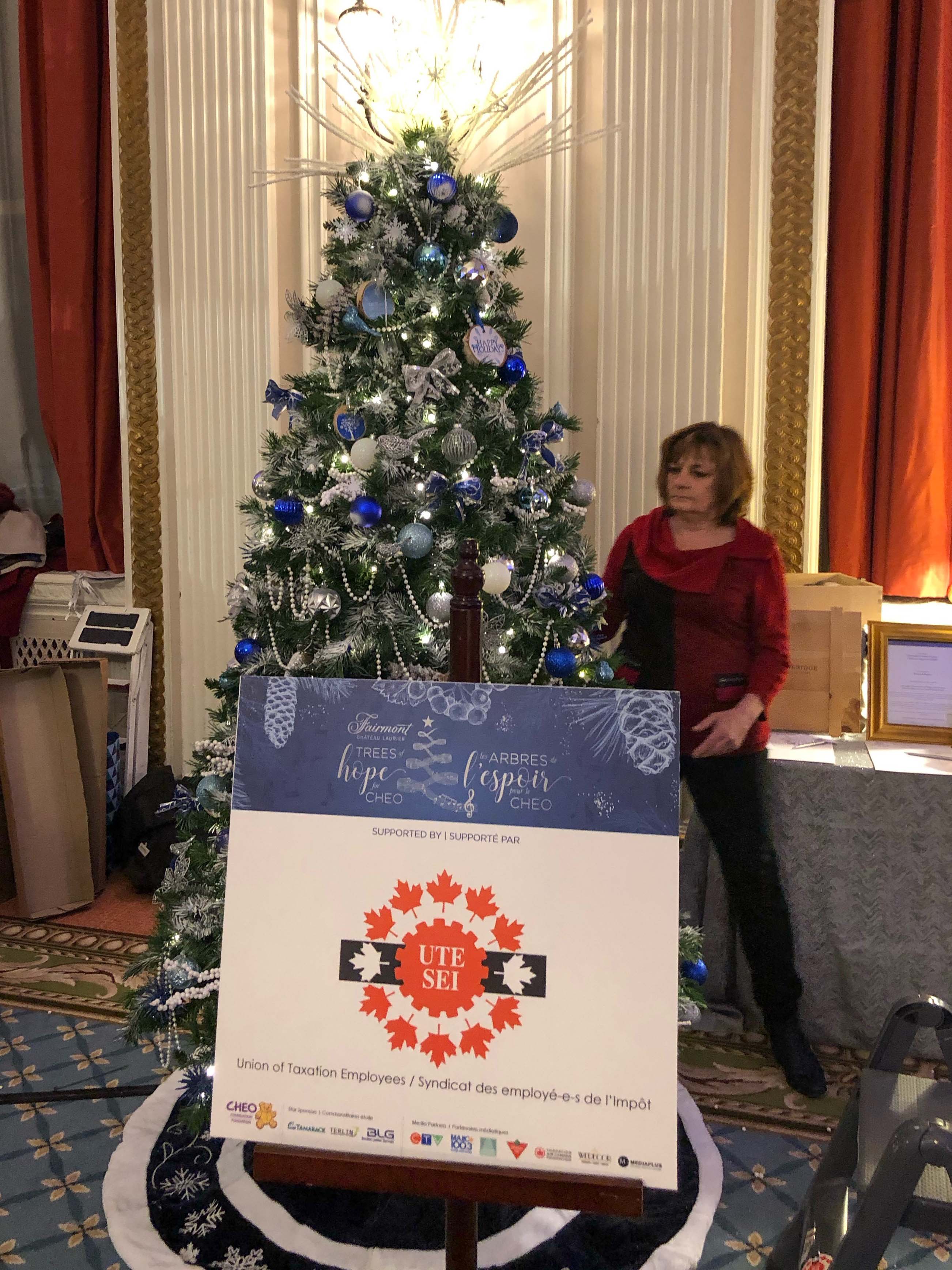 UTE made a donation to the Trees of Hope for CHEO. UTE decorated a tree which is on display at the Fairmont Château Laurier. The tree was decorated by Andrea Holmes, Natasha Larose, Stephanie Wolff, and Sylvie Bastien from the National Office, and Marc Brière, National President.