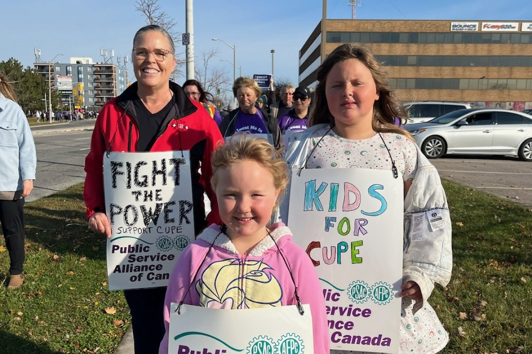 Gina Degner, 1st VP and two of her granddaughters joined a demonstration in support of CUPE education workers.
