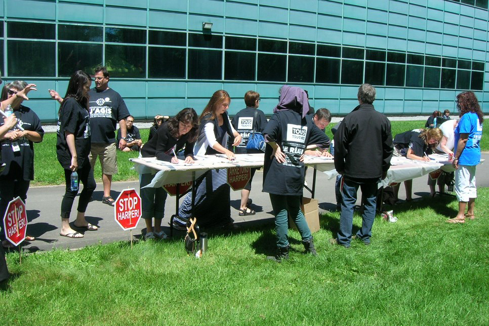 We held our monthly STOP Harper campaign, mobilized and informed our members about UTE/CRA bargaining, and signed the petition.