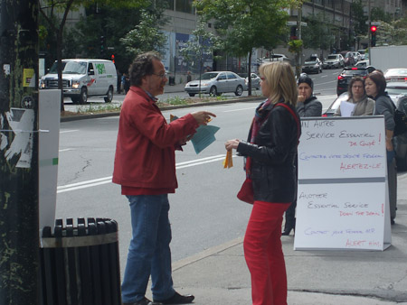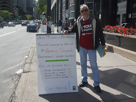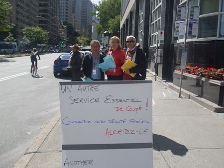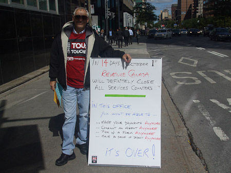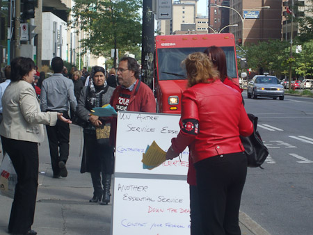 Demonstration concerning the closing of the cash and service counters in Montreal. / Mobilisation concernant la fermeture des caisses et comptoirs de service de Montréal.