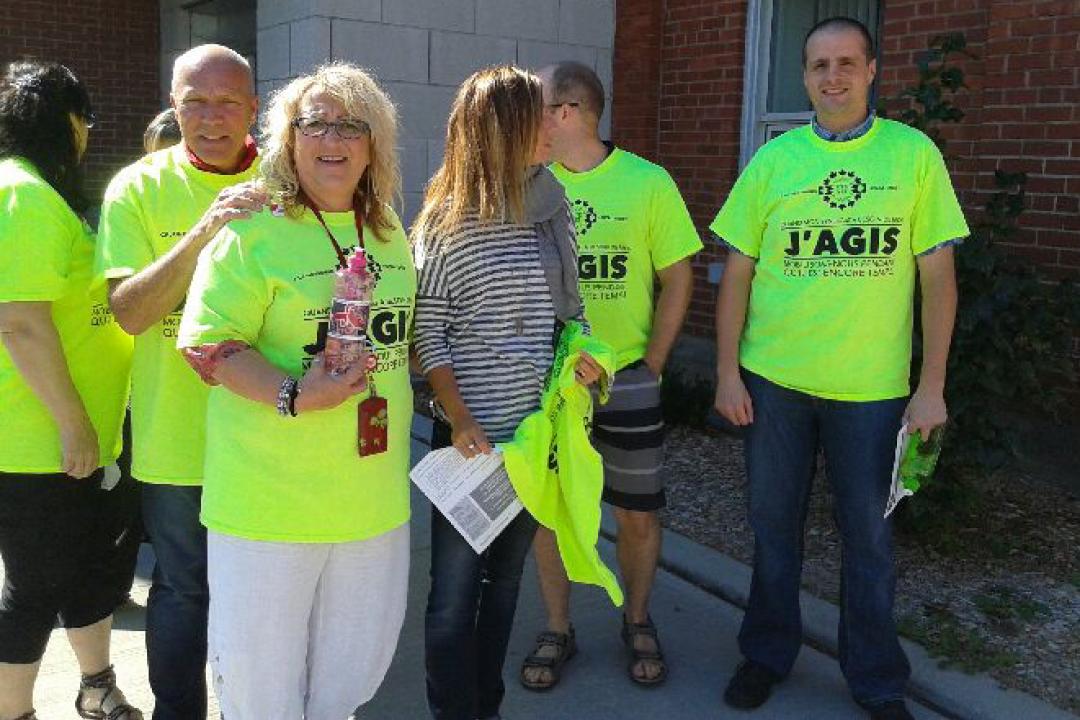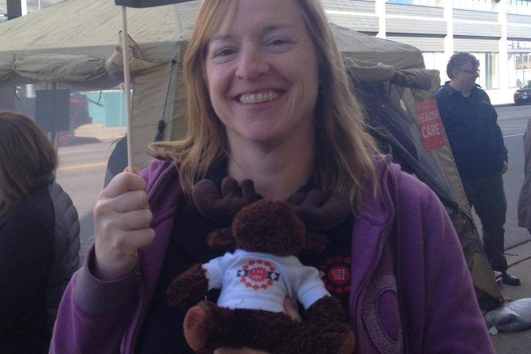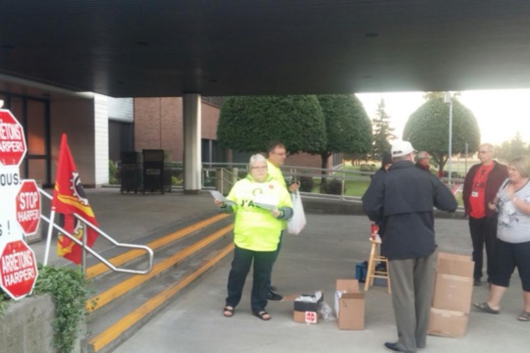 PSAC National President, Robyn Benson helps distribute flyers