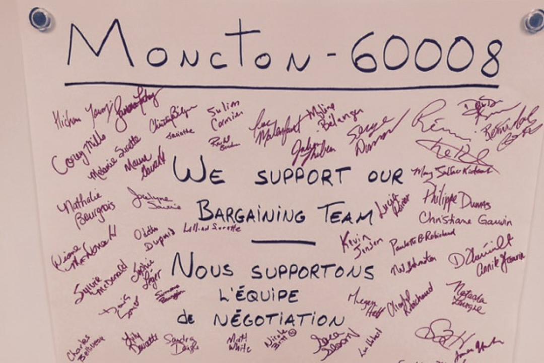 Image Edmonton Local 30025 handing out flags with our collective agreement tombstone / Edmonton, section locale 30025 distribue des drapeaux avec la pierre tombale de notre convention collective. Locals Edmonton