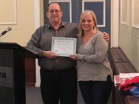 Ginette Foucault was presented with the Al Lough Award for her on-going committment to the aims and objectives of UTE. The award was presented to her by Mike Chartrand, President of the Ottawa Headquarters Local 70000, at the April 3, 2019 annual general meeting.