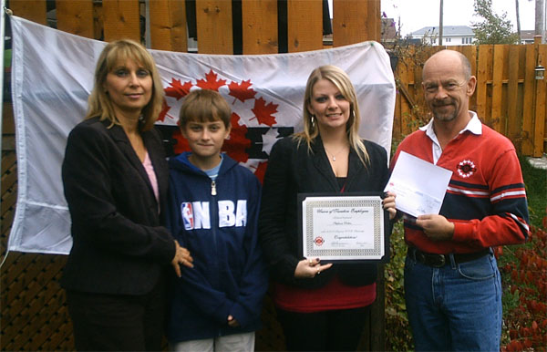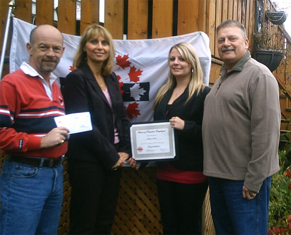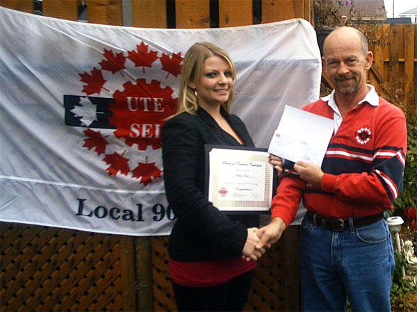 Photos de la gagnate régionale d'une bourse d'étude. Son père travaille pour la section locale de St. John's. Dans les photos: Stephanie Walters, gagnante; son père et notre membre, Hector Walters avec sa femme Debbie et fils Evan. Le Président de la section locale de St. John's, Gerard Ennis a remis le certificat et le chèque.