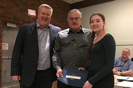 Jennifer Pittman a remporté la bourse régionale Al Rollins de l’Atlantique. Brian Oldford, vice-président régional pour l'Atlantique a présenté le chèque et certificat. Le président national, Marc Brière était sur place pour la présentation.