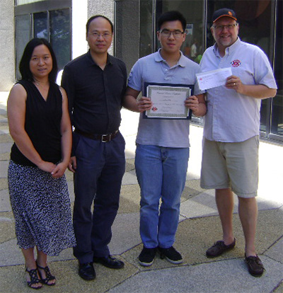 James Junxi Lao a reçu une de nos bourses d'études nationales. Jamie vanSydenborgh, Vice-président régional pour la région du sud-ouest Ontario a fait la présentation au récipiendaire James Junxi Lao, fils de notre membre Peter Lao.