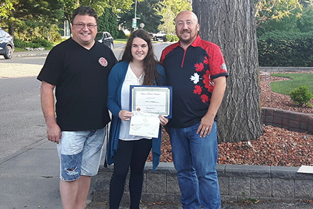 Julianna Roslinski a remporté la bourse régionale Don Davoren des Montagnes Rocheuses. Kevin Welgush, président de la section locale 40023 - Saskatoon a présenté le chèque et certificat. Toute sa famille a assité à la présentation. Julianna a été ravie d'accepter et heureux de commencer son éducation post secondaire dans la poursuite d'une carrière dans la photographie.